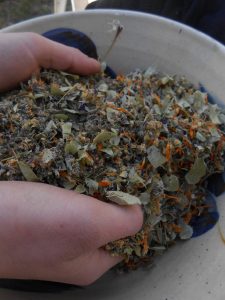 Pour notre premier atelier transfo de 2020 on a pioché dans nos réserves de plantes séchées… pour faire une tisane antitussive. Tilleul, soucis, hysope, lavande… que des bonnes choses pour cet hiver!